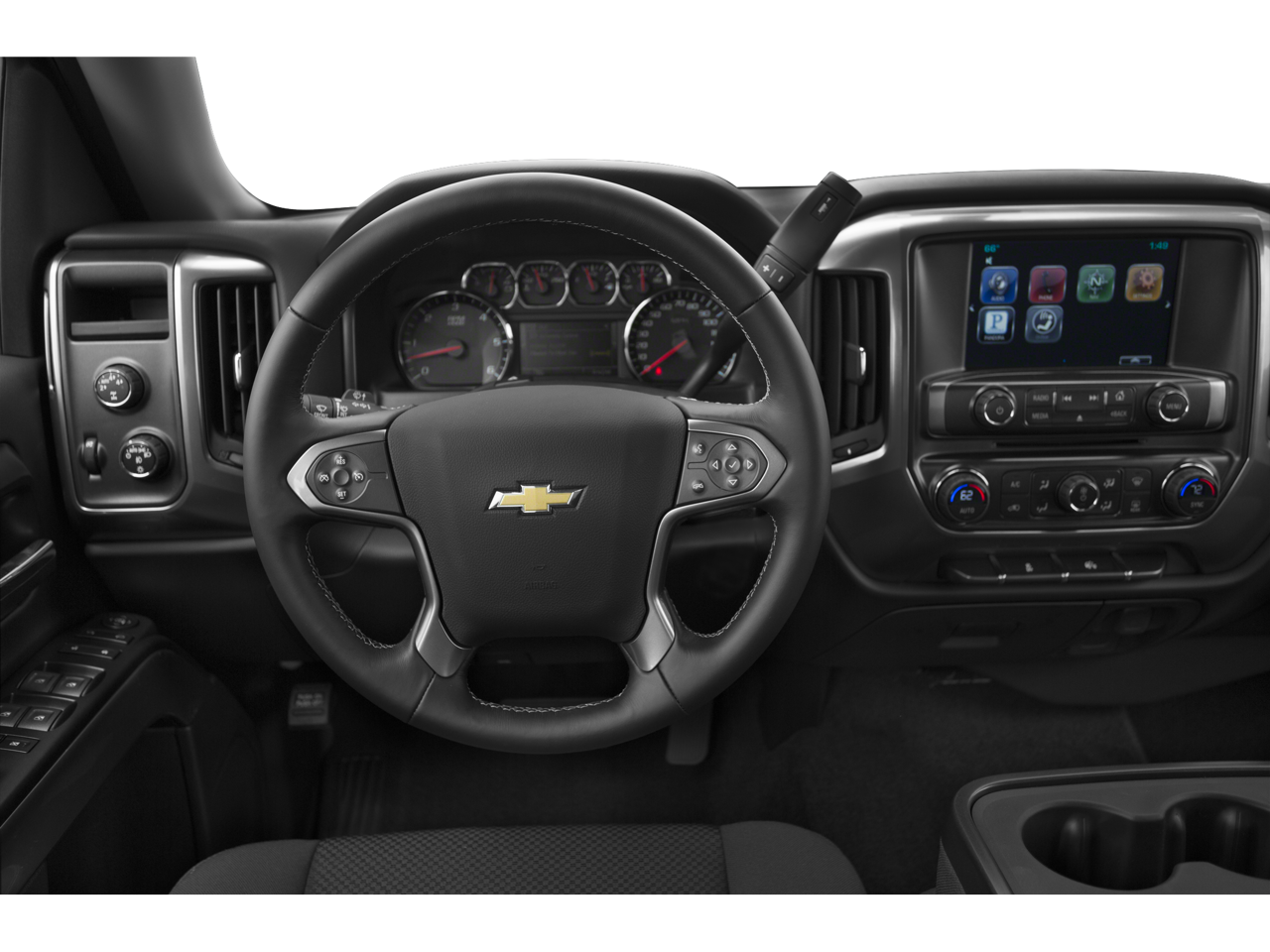 ALL STAR EDITION includes (AG1) driver 10-way power seat adjuster with (AZ3) bench seat only, (CJ2) dual-zone climate control, (BTV) Remote Vehicle Starter system, (IO5) MyLink 8 Diagonal Color Touch Screen audio system, (UVC) Rear Vision Camera, (C49) rear-window defogger and (KI4) 110-volt power outlet (Includes (RD1) 18 x 8.5 bright-machined aluminum wheels. ENGINE, 5.3L ECOTEC3 V8 WITH ACTIVE FUEL MANAGEMENT, DIRECT INJECTION AND VARIABLE VALVE TIMING includes aluminum block construction (355 hp [265 kW] @ 5600 rpm, 383 lb-ft of torque [518 Nm] @ 4100 rpm; more than 300 lb-ft of torque from 2000 to 5600 rpm), SEATING, HEATED DRIVER AND FRONT PASSENGER, SEATS, FRONT 40/20/40 SPLIT-BENCH, 3-PASSENGER, AVAILABLE IN CLOTH OR LEATHER includes driver and front passenger recline with outboard head restraints and center fold-down armrest with storage. Also includes manually adjustable driver lumbar, lockable storage compartment in seat cushion, and storage pockets. (STD), REMOTE VEHICLE STARTER SYSTEM Includes (UTJ) Theft-deterrent system.), CHEVROLET MYLINK AUDIO SYSTEM, 8 DIAGONAL COLOR TOUCH WITH AM/FM/SIRIUSXM, USB PORTS auxiliary jack, SD card slot, Bluetooth® streaming audio for music and most phones, hands-free smartphone integration, Pandora Internet radio, voice-activated technology for radio and phone, TRANSMISSION, 6-SPEED AUTOMATIC, ELECTRONICALLY CONTROLLED with overdrive and tow/haul mode. Includes Cruise Grade Braking and Powertrain Grade Braking (STD).