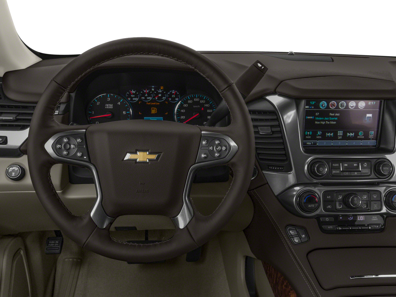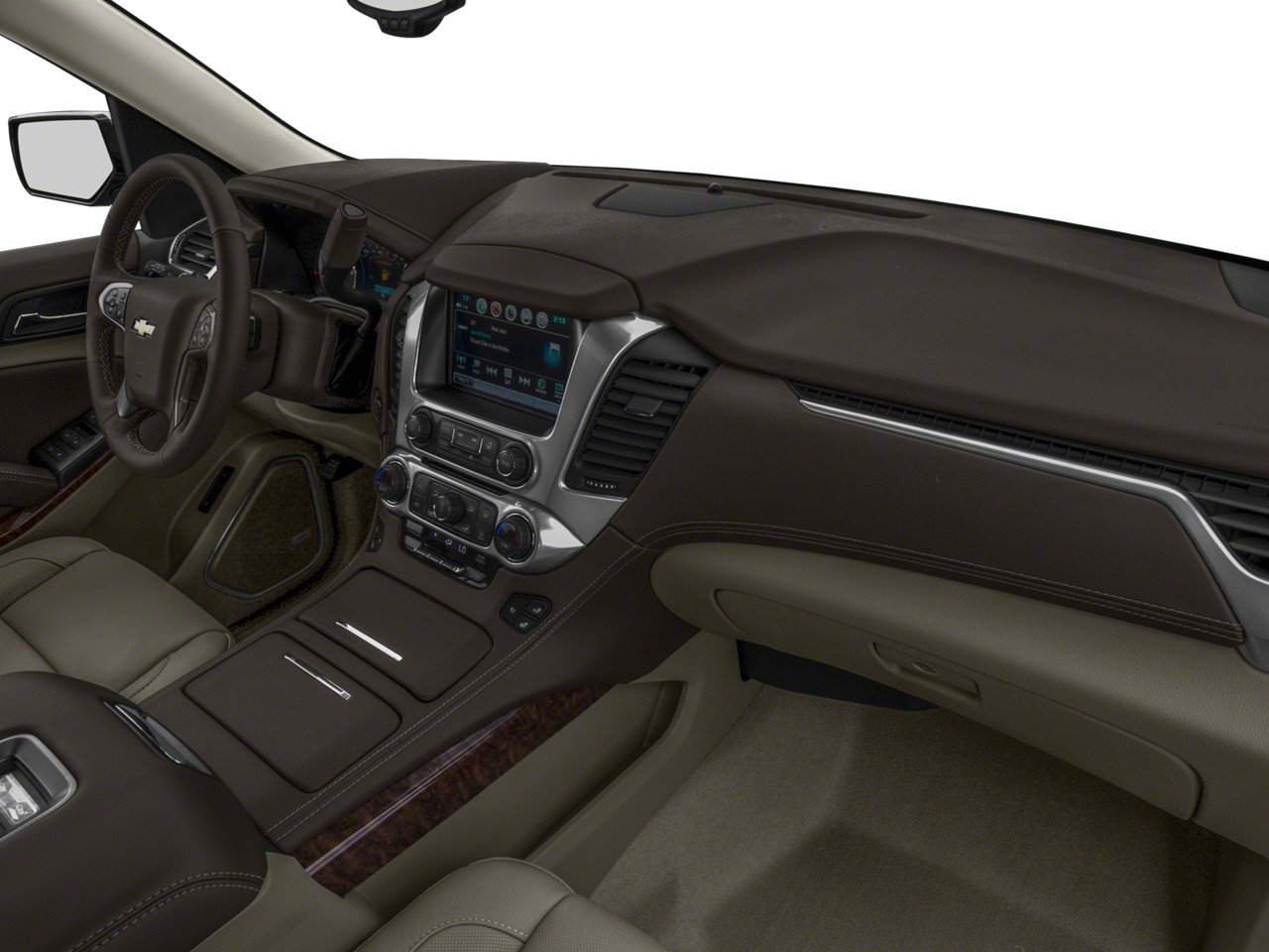 SUN, ENTERTAINMENT AND DESTINATIONS PACKAGE, (CF5) power sunroof, (U42) rear seat DVD entertainment system and (IO6) Chevrolet MyLink radio with navigation, WHEELS, 22 (55.9 CM) 6-SPOKE CHROME, ENTERTAINMENT SYSTEM, REAR SEAT, BLU-RAY/DVD with remote control, overhead display, Wi-Fi wireless projection capability, four 2-channel wireless digital headphones, auxiliary HDMI/MHL audio/video input and 2 USB ports, ASSIST STEPS, POWER-RETRACTABLE with bright accent strip and perimeter lighting, ADAPTIVE CRUISE CONTROL with Forward Automatic Braking, radar based system automatically adjusts speed to maintain preset following gap, LPO, BLACK ROOF RACK CROSS BARS (dealer-installed), SEATS, FRONT BUCKET WITH PERFORATED LEATHER-APPOINTED HEATED AND VENTILATED SEAT CUSHIONS 12-way power driver and passenger seat includes 6-way power cushions, driver seat 2-position memory, 4-way power lumbar control and power recline (STD), AUDIO SYSTEM, CHEVROLET MYLINK RADIO WITH NAVIGATION AND 8 DIAGONAL COLOR TOUCH-SCREEN AM/FM stereo with seek-and-scan and digital clock, includes Bluetooth® streaming audio for music and select phones; voice-activated technology for radio and phone; and Shop with the ability to browse, select and install apps to your vehicle. You can customize your content with audio, weather and more; featuring Apple CarPlay and Android Auto capability for compatible phone; 5 USB ports and 1 auxiliary jack (STD), ENGINE, 5.3L V8 ECOTEC3 WITH ACTIVE FUEL MANAGEMENT, DIRECT INJECTION AND VARIABLE VALVE TIMING includes aluminum block construction (355 hp [265 kW] @ 5600 rpm, 383 lb-ft of torque [518 N-m] @ 4100 rpm) (STD), TRANSMISSION, 6-SPEED AUTOMATIC, ELECTRONICALLY CONTROLLED with overdrive and tow/haul mode (STD).