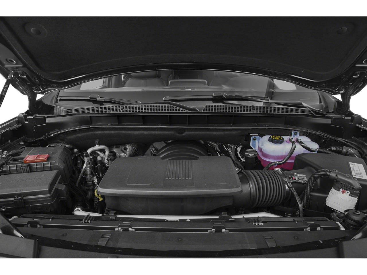 RST PERFORMANCE EDITION includes (WPL) Luxury Package content, (NZW) 20 High Gloss Black aggressive aluminum wheels, (XCS) 275/55R20SL all-season, blackwall tires, (ATN) second row power bucket seats, (Z60) High-Performance Suspension Package, (J49) Heavy-Duty front Brembo brakes, (J6F) Torch Red front and rear calipers, (N10) dual twin polished stainless-steel exhaust tips, (WBC) Cat-Back Performance Exhaust, LPO, (5W7) Performance Air Intake System, LPO, (SBZ) Sport Pedal Cover Kit, LPO, (RIK) Black nameplates, LPO and (V53) luggage rack side rail delete and (VPV) Ship Thru, Produced in Arlington Assembly and shipped to Kerr Industries and onto Arlington Assembly, LUXURY PACKAGE includes (WPD) Driver Alert Package content, (UV2) HD Surround Vision, (UKK) Rear Pedestrian Alert, (A45) memory settings, (DXR) outside heated power-adjustable, power-folding, body-color mirrors with driver-side auto-dimming and integrated turn signal indicators, (N38) power tilt and telescopic steering column, (KI3) heated steering wheel, (KA6) second row outboard heated seats, (ATT) second row power 60/40 split-folding bench seats and (AS8) third row power 60/40 split-folding bench seats Also includes (KSG) Adaptive Cruise Control and (UGN) Enhanced Automatic Emergency Braking. ENGINE, 6.2L ECOTEC3 V8 with Dynamic Fuel Management, Direct Injection and Variable Valve Timing, includes aluminum block construction (420 hp [313 kW] @ 5600 rpm, 460 lb-ft of torque [624 Nm] @ 4100 rpm), REAR SEAT MEDIA SYSTEM includes dual rear seat-mounted 12.6 diagonal color-touch LCD HD screens, Wi-Fi wireless projection capability, two 2-channel wireless infrared digital headphones with 2 HDMI ports on the back of the center console; compatible with Bluetooth® headphones, AUDIO SYSTEM, CHEVROLET INFOTAINMENT 3 PREMIUM SYSTEM WITH GOOGLE BUILT-IN 10.2 diagonal HD color touchscreen, includes multi-touch display, AM/FM stereo, Bluetooth® streaming audio for music and most phones; featuring wireless Android Auto and Apple CarPlay capability for compatible phones, advanced voice recognition, in-vehicle apps, personalized profiles for infotainment and vehicle settings (STD), STEERING WHEEL, HEATED, TRANSMISSION, 10-SPEED AUTOMATIC electronically controlled with overdrive, includes Traction Select System including tow/haul (Standard with (L84) 5.3L EcoTec3 V8 engine only or (L87) 6.2L EcoTec3 V8 engine only.) (STD), DRIVER ALERT PACKAGE includes (UKC) Lane Change Alert with Side Blind Zone Alert and (UFG) Rear Cross Traffic Alert.